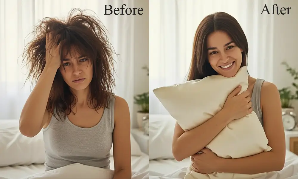 “I’ve been using this pillowcase for about a month, and I can honestly say my skin looks better. I usually wake up with sleep lines on my face, but with this silk pillowcase, that doesn’t happen anymore. It feels really gentle on my skin and keeps cool all night.”