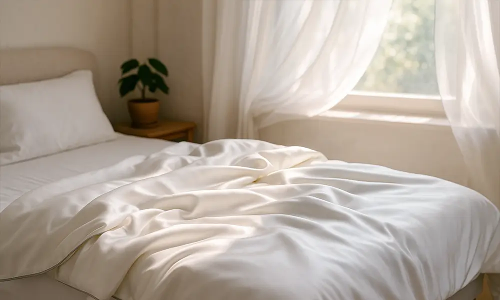 For the same insulating capacity, a silk duvet remains lighter, avoiding the heavy comforter effect.